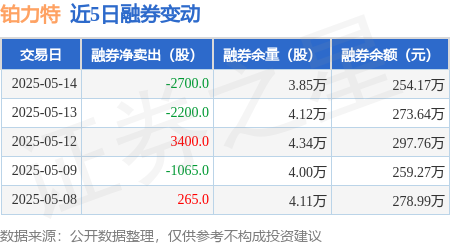 发布日期:2025-05-25 12:26 点击次数:84本站消息,5月14日,铂力特(688333)融资买入4342.36万元,融资偿还7729.62万元,融资净卖出3387.26万元,融资余额10.75亿元,近20个交易日中有11个交易日出现融资净买入。